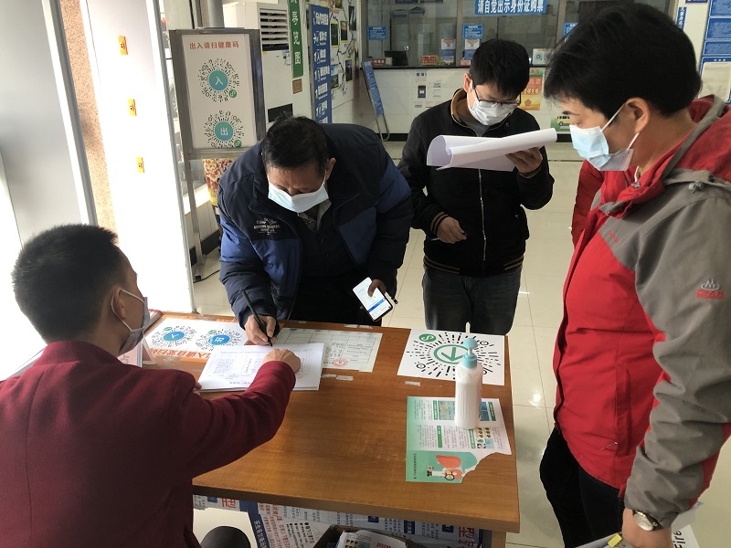 乐业县纪委监委督查组工作人员在乐业县客运站督查疫情防控措施落实情况。
